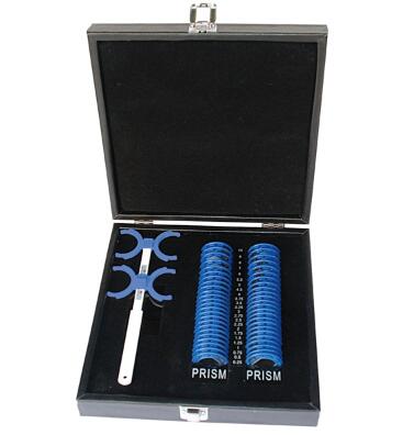 驗光鏡片箱中有各類鏡片, 包括正負球鏡片、正負柱鏡片、棱鏡片、輔助鏡片。JJG579- 1998中對各類鏡片都規(guī)定了技術(shù)要求和檢定方法, 但驗光鏡片箱的最終判定只依據(jù)球鏡片、柱鏡片、棱鏡片的檢測情況: 要求球鏡片、柱鏡片單項合格率一律不得低于90%, 同時要求球鏡片、柱鏡片和棱鏡片的整箱合格率不得低于85%。